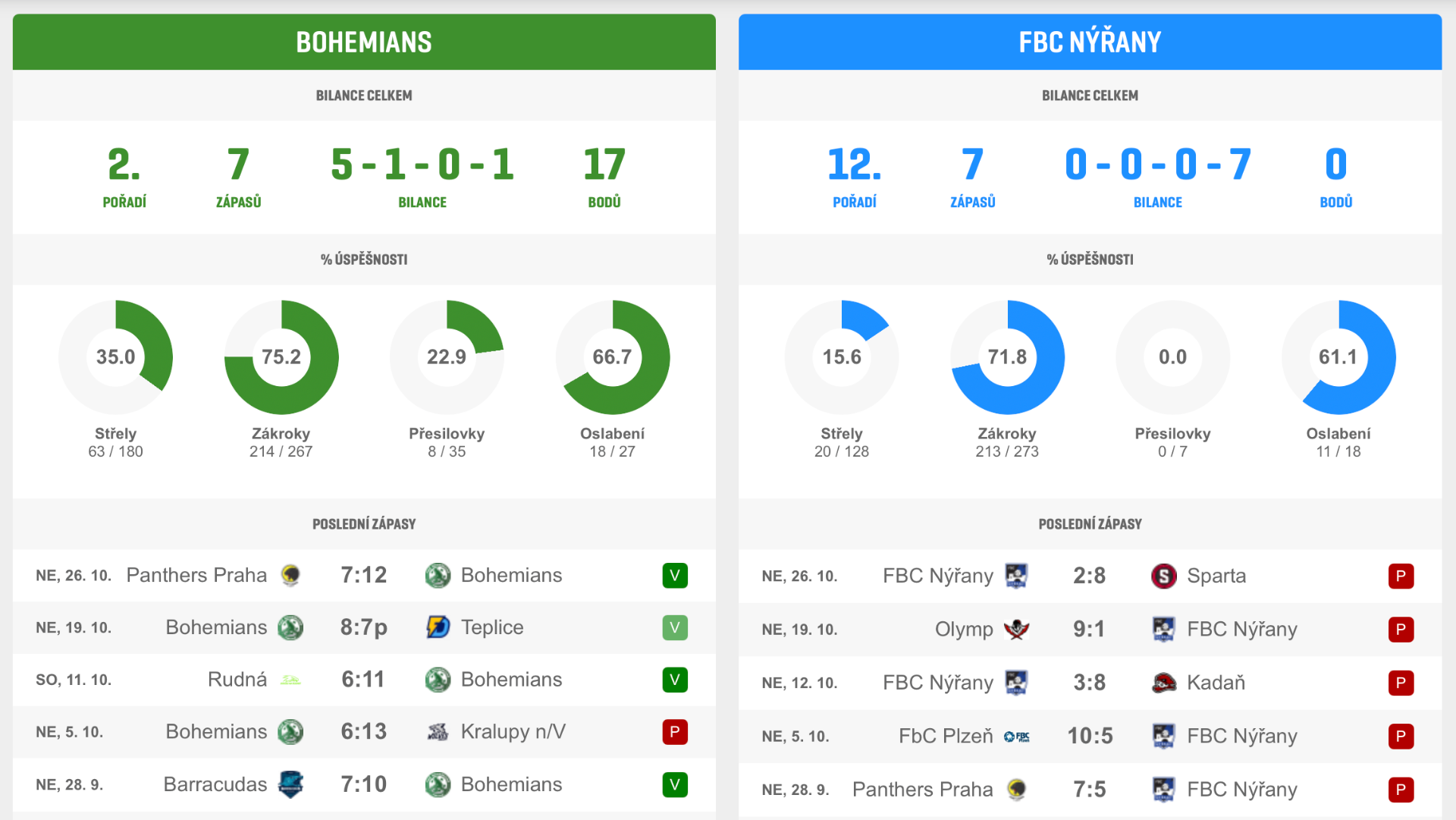 Naši hráči zatím na první body stále čekají. V posledním utkání se Spartou se sice podařilo dvakrát skórovat (Komanec, Mizera), ale body z toho znovu nebyly. I přes výsledkovou smůlu tým ukazuje zlepšení v pohybu a kombinaci, což bude chtít potvrdit i proti favorizované Bohemce.