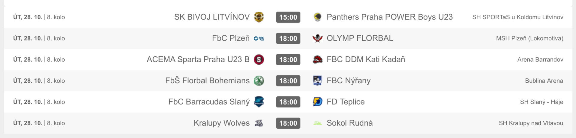 Po sérii těžkých zápasů čeká naše muže další náročný soupeř. V úterním osmém kole Divize se představíme na hřišti FBŠ Florbal Bohemians, kteří patří k hlavním favoritům soutěže. Utkání se odehraje v úterý 28. října od 18:00 v Bublina Areně v Praze.